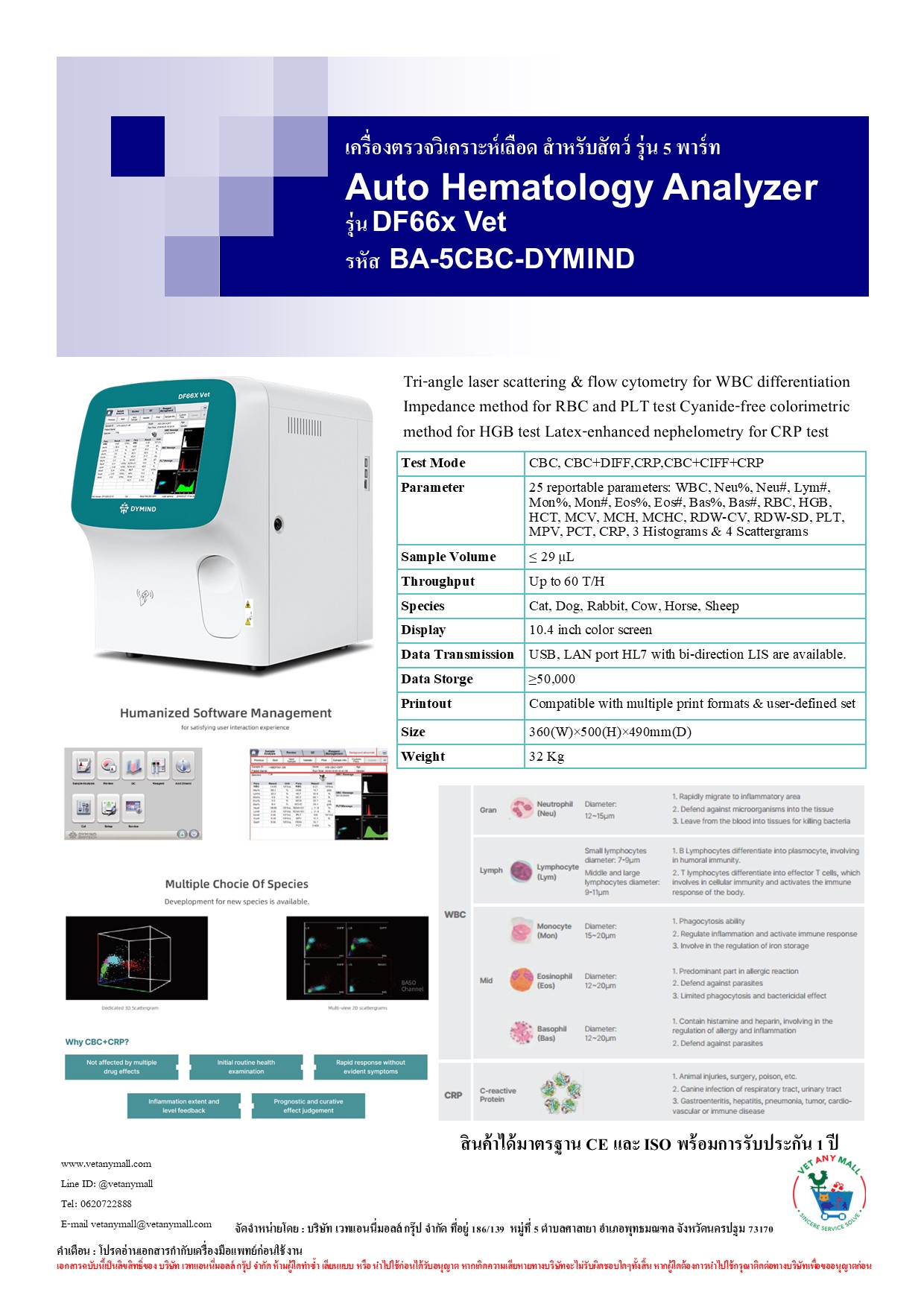 เครื่องตรวจวิเคราะห์เลือด สำหรับสัตว์ รุ่น 5 พาร์ท