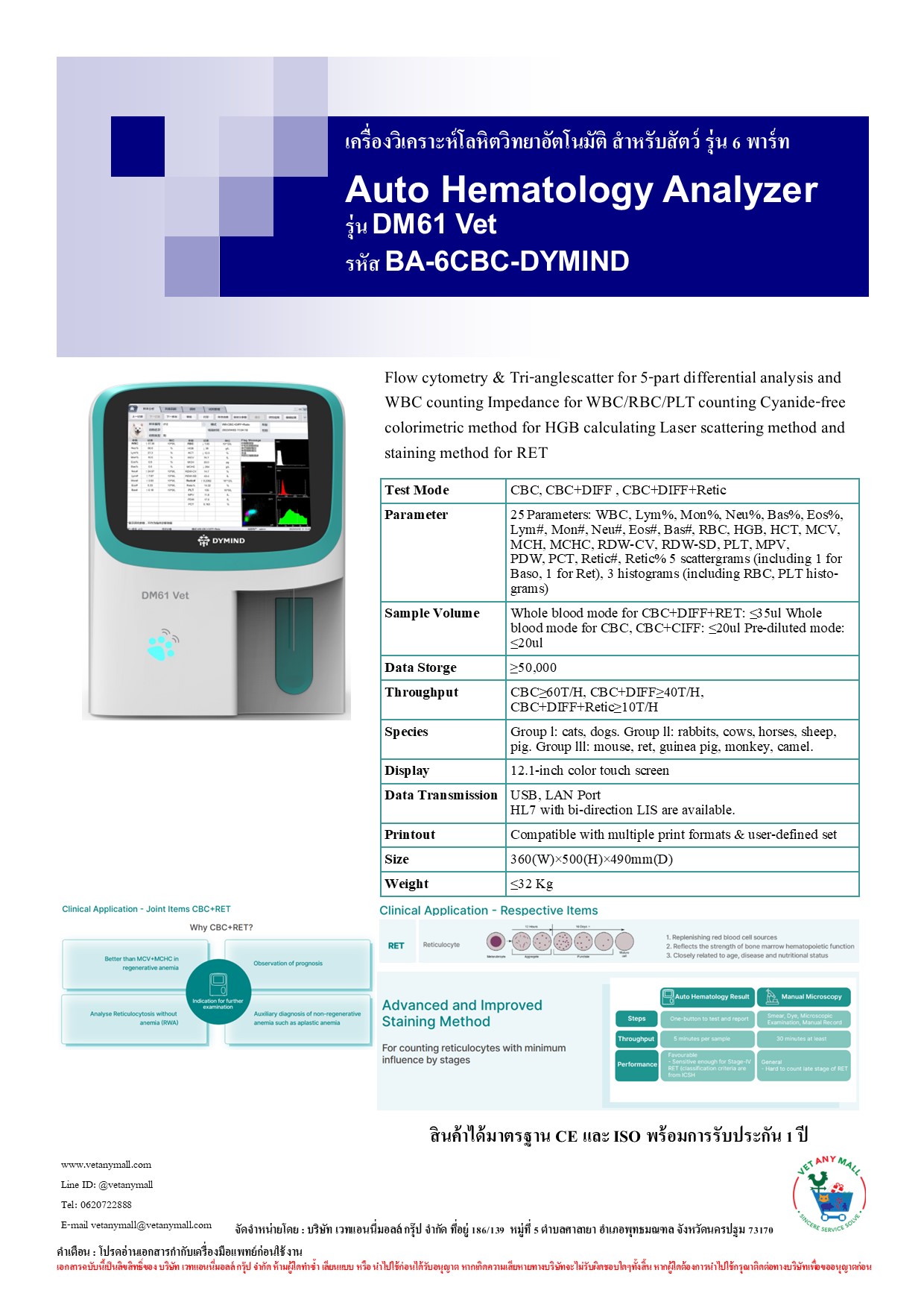 เครื่องวิเคราะห์โลหิตวิทยาอัตโนมัติ สำหรับสัตว์ รุ่น 6 พาร์ท