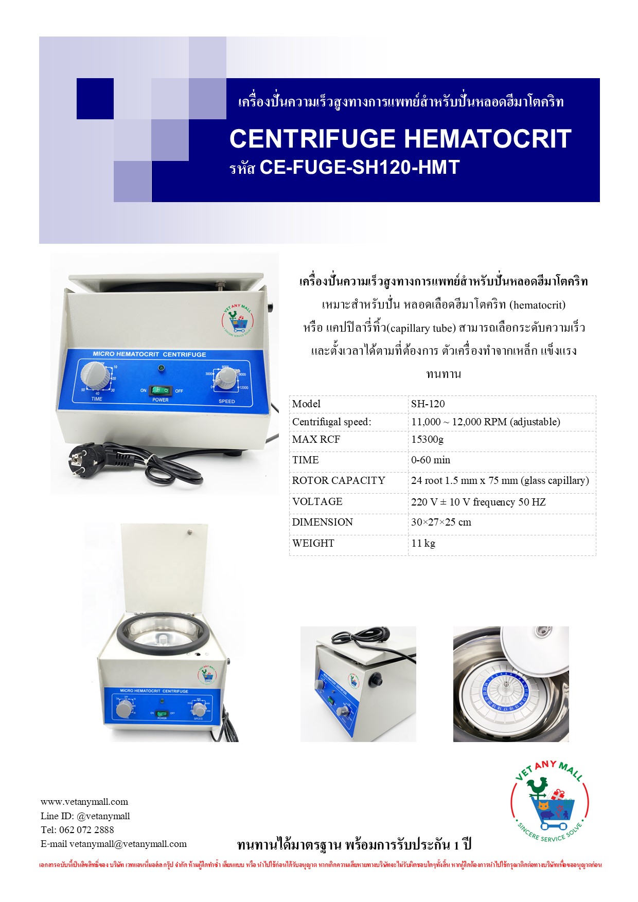 เหมาะสำหรับปั่น หลอดเลือดฮีมาโตคริท (hematocrit) หรือ แคปปิลารี่หิ้ว(capillary tube) สามารถเลือกระดับความเร็ว และตั้งเวลาได้ตามที่ต้องการ ตัวเครื่องทำจากเหล็ก แข็งแรง ทนทาน