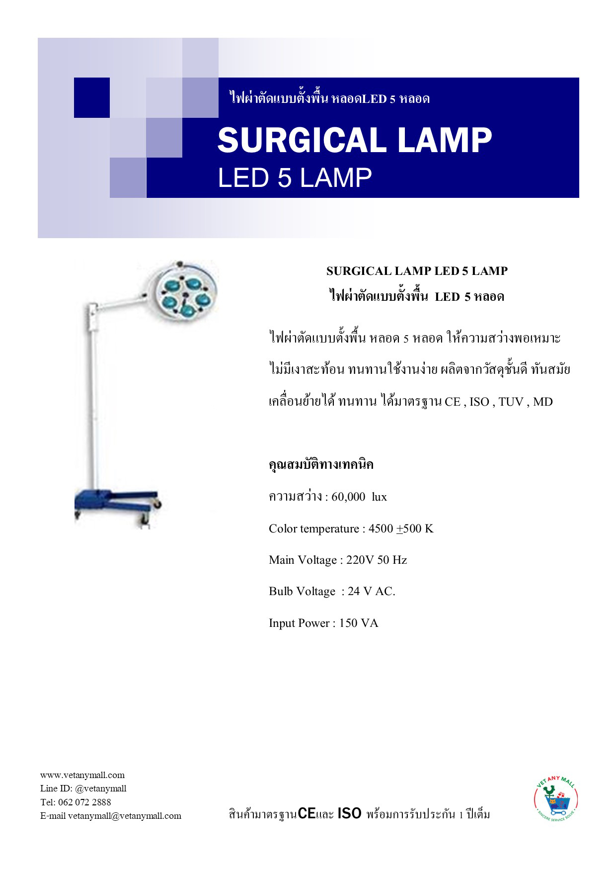 ไฟผ่าตัดแบบตั้งพืน หลอดled 5 หลอด
