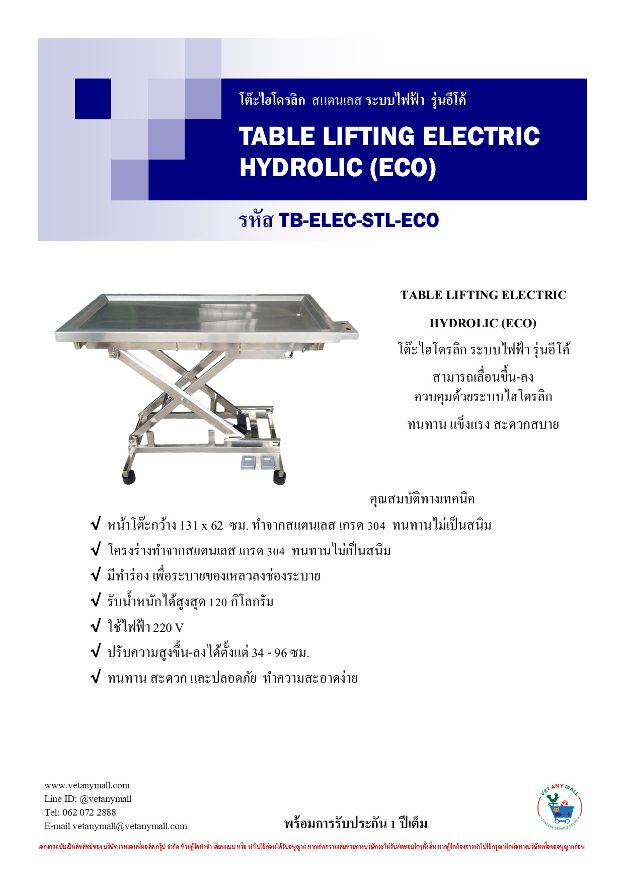 โต๊ะไฮโดรลิก ระบบไฟฟ้า รุ่นอีโค้ สามารถเลื่อนขึ้น-ลง