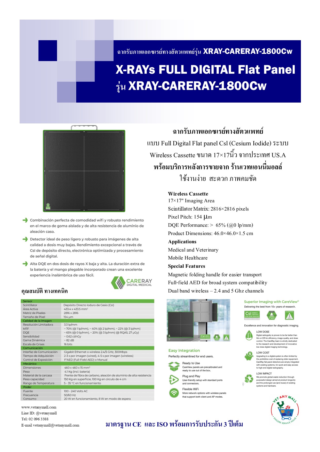 แบบ Full Digital Flat panel CsI (Cesium Iodide) ระบบ